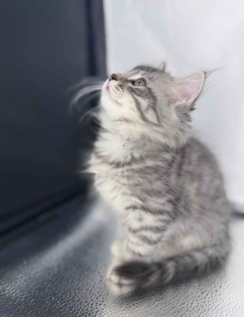 Pearl has been raised in a loving home where she’s become well-socialized and used to cuddles, playtime, and people of all ages. True to the Siberian breed, she’s affectionate, smart, and has a hypoallergenic coat that may be suitable for families with allergies. If you’re looking for a kitten who’s equal parts beauty and heart, Pearl might just be your perfect match.