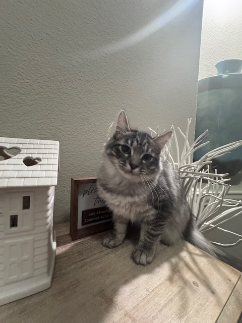 Color: Silver mackerel tabby with luxurious plume tail