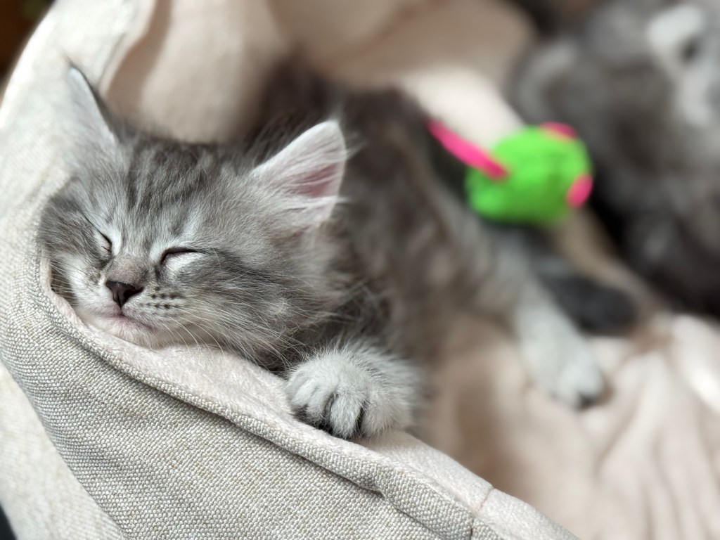 Leo is a stunning Siberian kitten with a light silver tabby coat and soft, snowy facial features that give him an angelic, almost ethereal appearance. His bright eyes and playful spirit light up any room, while his luxurious fur showcases elegant striping and a silvery undercoat that shimmers in the light. Leoβs lighter face gives him a distinctive and regal look compared to his siblings β heβs truly one of a kind! With his gentle personality and show-stopping coat, Leo is the perfect companion for any loving home.