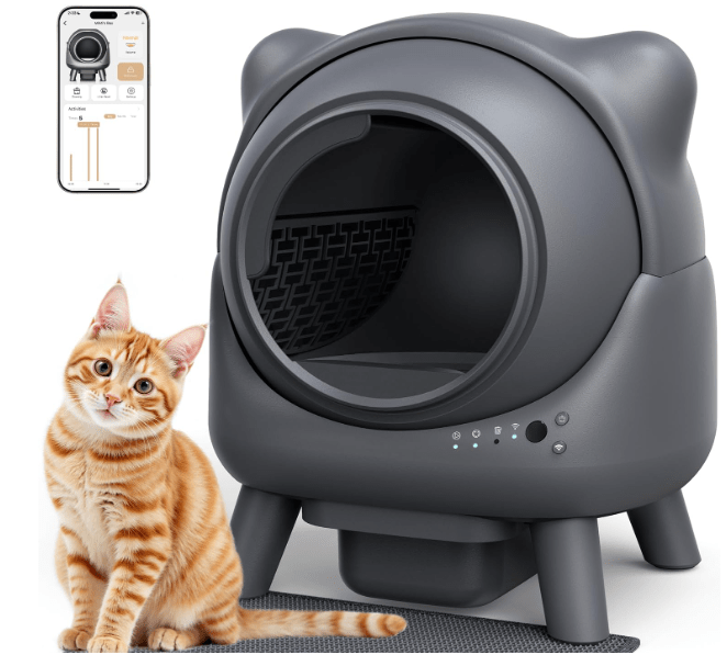 Self Cleaning Litter Box, Automatic Litter Box, FEELNEEDY Odor Control Robot, Cat Ears Design, 65L APP Real-Time Monitor, Cat Litter-Boxs for Multiple Cats, Safety Sensors, with 1 Trash Bag